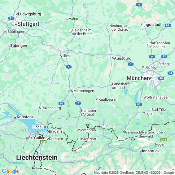 Städte in der Nähe von Kempten (Allgäu)